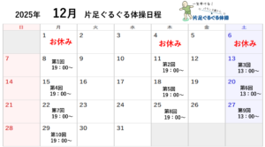 令和7年 12月の片足ぐるぐるル体操は以下の日程で行います。