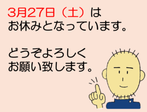 3月27日(土)はお休みとさせていただきます。