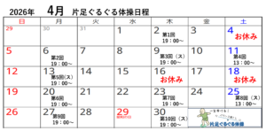 令和8年4月の片足ぐるぐるル体操は以下の日程で行います。